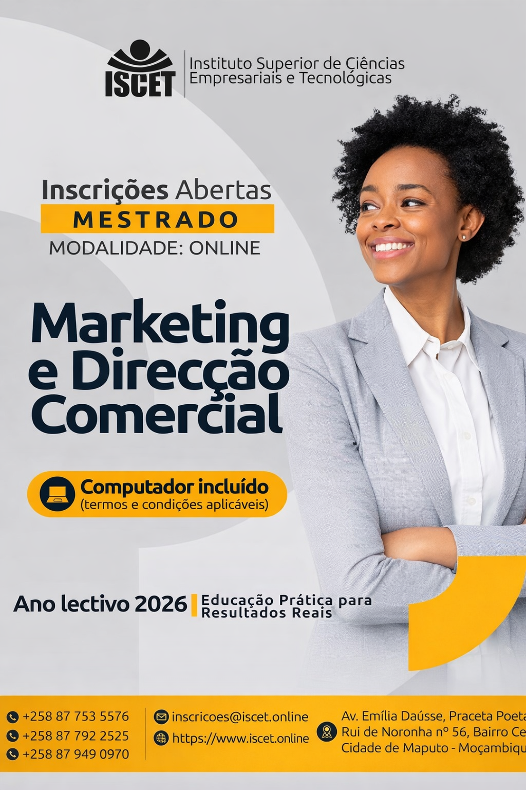 O curso, que terá início a 16 de Fevereiro do ano em curso, com duração de dois anos, oferece uma formação avançada e inovadora para profissionais que desejam destacar-se num mercado competitivo e dinâmico. De acordo com o ISCET, o programa, ministrado na modalidade online, combina rigor académico com uma abordagem prática, capacitando os participantes a dominar estratégias de marketing, compreender o comportamento do consumidor e liderar equipas comerciais com excelência.